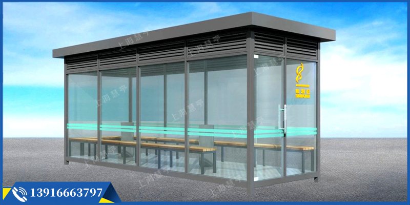 防滑防火地板,集成烟蒂收集装置,LED照明电路系统,内置休息座椅,防风防雨设计。